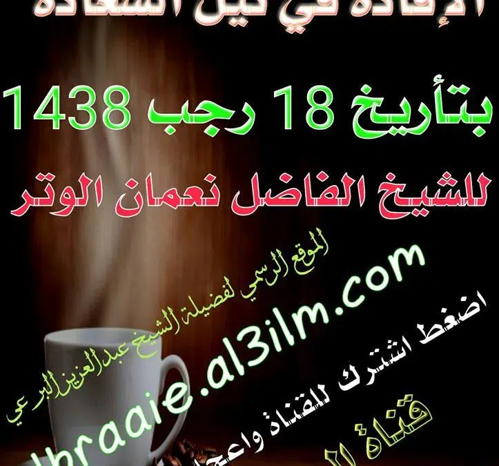 الإفادة في نيل السعادة السبت ۱۸ رجب ۱٤۳۸ هـ الموافق ۱۵ أبريل ۲۰۱۷ مـ | المحاضرات، ضيوف الشيخ | شارك بتعليقك PlayStop نافذة X مقالات ذات صلة إن تنصروا الله ينصركم عقبات في طريق الزواج الوتر شارك بتعليقك إلغاء الردلن يتم نشر عنوان بريدك الإلكتروني. الحقول الإلزامية مشار إليها بـ *التعليق * الاسم البريد الإلكتروني الموقع الإلكتروني احفظ اسمي، بريدي الإلكتروني، والموقع الإلكتروني في هذا المتصفح لاستخدامها المرة المقبلة في تعليقي. Δ
