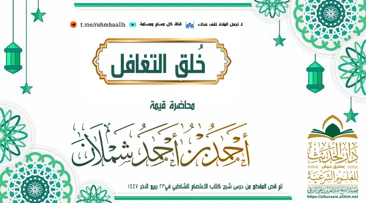 خلق التغافل محاضرة الشيخ أحمد شملان في 24 ربيع الآخر 1447 الخميس ۲٤ ربيع الثاني ۱٤٤۷ هـ الموافق ۱٦ أكتوبر ۲۰۲۵ مـ | طلاب الشيخ وضيوفه، المحاضرات | شارك بتعليقك ألقيت بدار الحديث بمفرق حبيش حرسها الله تعالى PlayStop نافذة X مقالات ذات صلة قواعد في أعمال القلوب 17 ربيع الآخر 1447 محاضرة للشيخ جمال التالبي أسباب تحصيل العلم محاضرة الشيخ أحمد بن حسن الريمي 29 ربيع الآخر 1447 شارك بتعليقك إلغاء الردلن يتم نشر عنوان بريدك الإلكتروني. الحقول الإلزامية مشار إليها بـ *التعليق * الاسم البريد الإلكتروني الموقع الإلكتروني احفظ اسمي، بريدي الإلكتروني، والموقع الإلكتروني في هذا المتصفح لاستخدامها المرة المقبلة في تعليقي. Δ